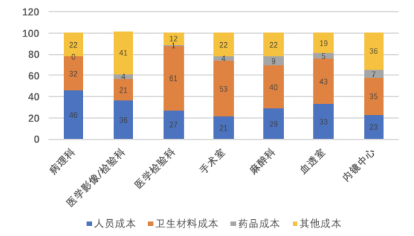 根據(jù)HIA發(fā)布的《中國(guó)首部公立醫(yī)院成本報(bào)告(2015)》,我國(guó)公立醫(yī)院各科室成本構(gòu)成中,病理科人員成本占總成本比達(dá)到46%,顯著高于其他臨床科室;檢驗(yàn)、影像科室這一指標(biāo)分別為35%、27%。