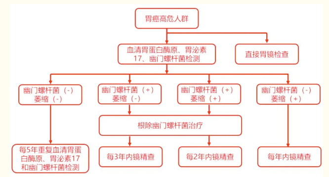 2014年4月,我國提出《中囯早期胃癌篩查及內(nèi)鏡診治共識意見》,共識推薦聯(lián)合血清學(xué)檢查胃蛋白酶原和幽門桿菌對胃癌高危人群進行檢測的路徑。
