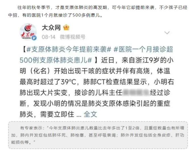根據(jù)復(fù)旦兒科醫(yī)院數(shù)據(jù)顯示:近期兒童發(fā)熱主要集中在甲流、支原體等病原微生物感染。其中,甲流單日檢出達(dá)100多例,較9月1日前增長了30%。周末就診高峰期,單日掛水人次可達(dá)900人。